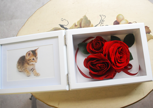 こちらはお客様お手持ちの花をプリザーブドフラワーへ加工する商品です。