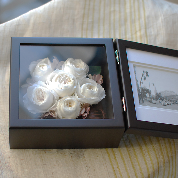 こちらはお客様お手持ちの花をプリザーブドフラワーへ加工する商品です。
